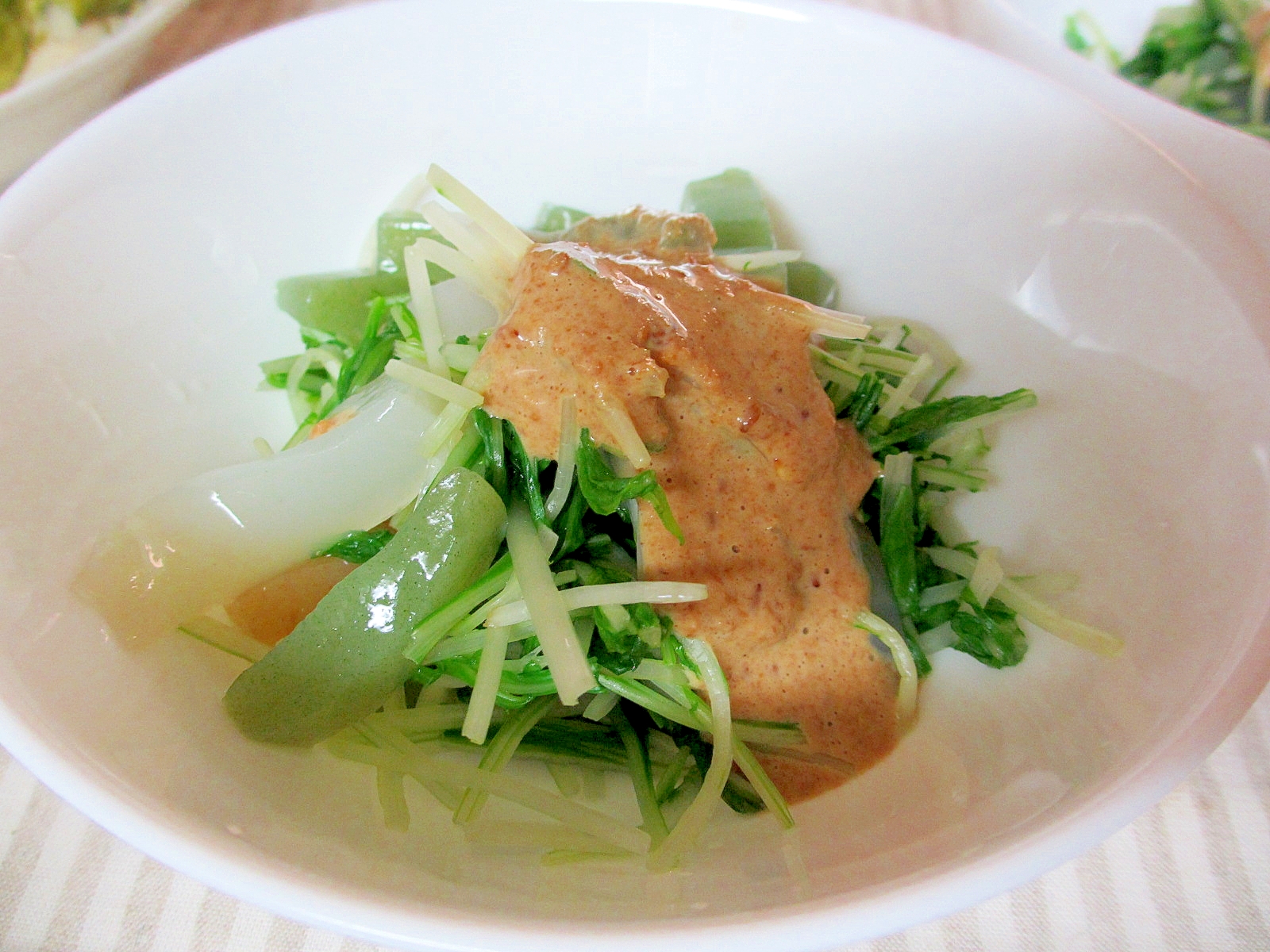 水菜と刺身こんにゃくのゴマダレ レシピ 作り方 By Mococo05 楽天レシピ