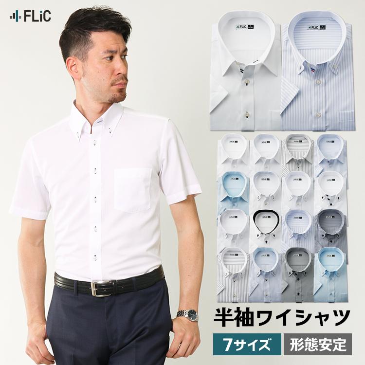 ワイシャツ 半袖 形態安定 クールビズ Yシャツ ボタンダウン レギュラーカラー 織柄 ストライプ メンズ おしゃれ Snb ワイシャツ専門店 Flic 通販 Yahoo ショッピング
